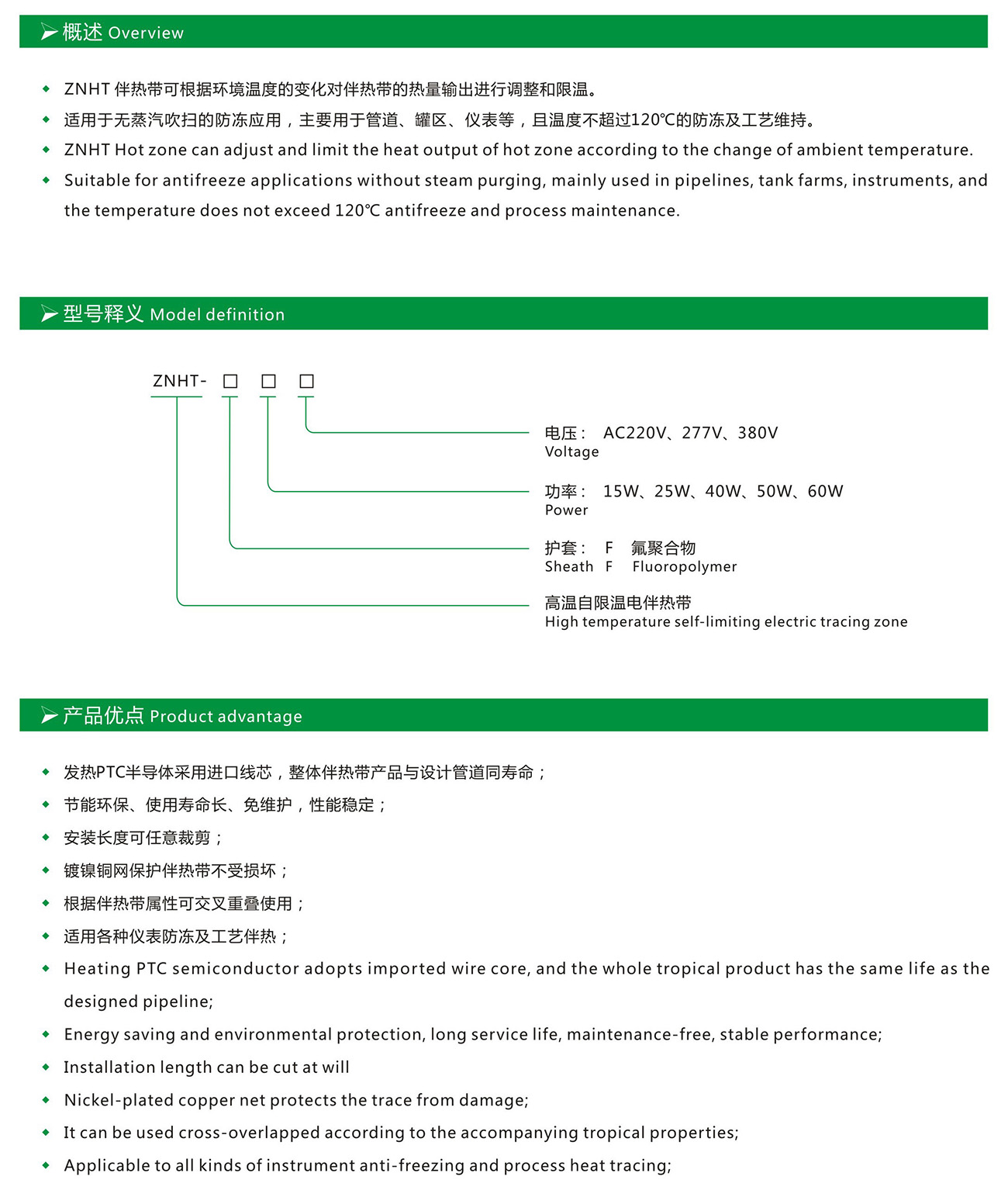 ZNHT高温自限温电伴热带